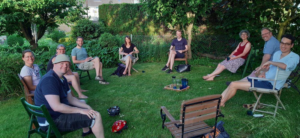 Die Zeichen stehen auf Aufbruch und Optimismus: Bestes Sommerwetter und sinkende Corona-Inzidenzen sorgten dafür, dass ein erstes Treffen des Brühler Wahlkampfteams in Präsenz stattfinden konnte. Dabei ging es vor allem darum, Aktionen zu planen und dafür Zeitrahmen abzustecken. Ein weiteres Thema war die Planung des Online-Wahlkampfes. Auch durfte das Wahlkampfteam einen ersten Blick auf die Plakate zur Bundestagswahl werfen – Grundlage für angeregte Gespräche über die gelungensten Motive. Dabei laufen einige Planungen im Hintergrund schon viel länger: „Im Januar mussten wir bereits entscheiden, wo in Brühl Großplakate stehen sollen“, berichtete der Parteivorsitzende Robert Saß im Rahmen des Treffens. Auch mit den GRÜNEN Freundinnen und Freunden vom Rhein-Erft-Kreis gab es bereits erste digitale Treffen.