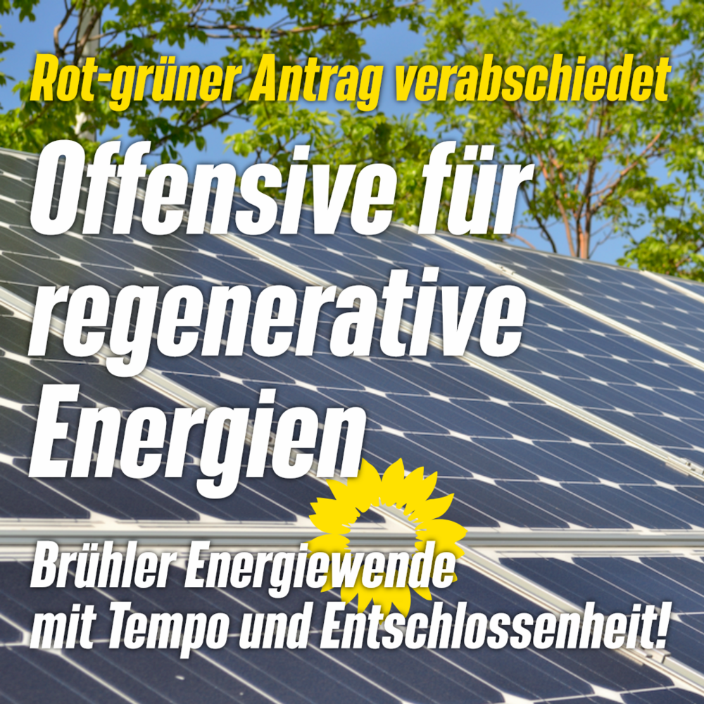 In der Ratssitzung am 31. Oktober 2022 wurde der gemeinsame Antrag »Offensive für regenerative Energien für Brühl« von SPD und GRÜNEN verabschiedet, der das Tempo der Brühler Energiewende drastisch erhöhen soll.