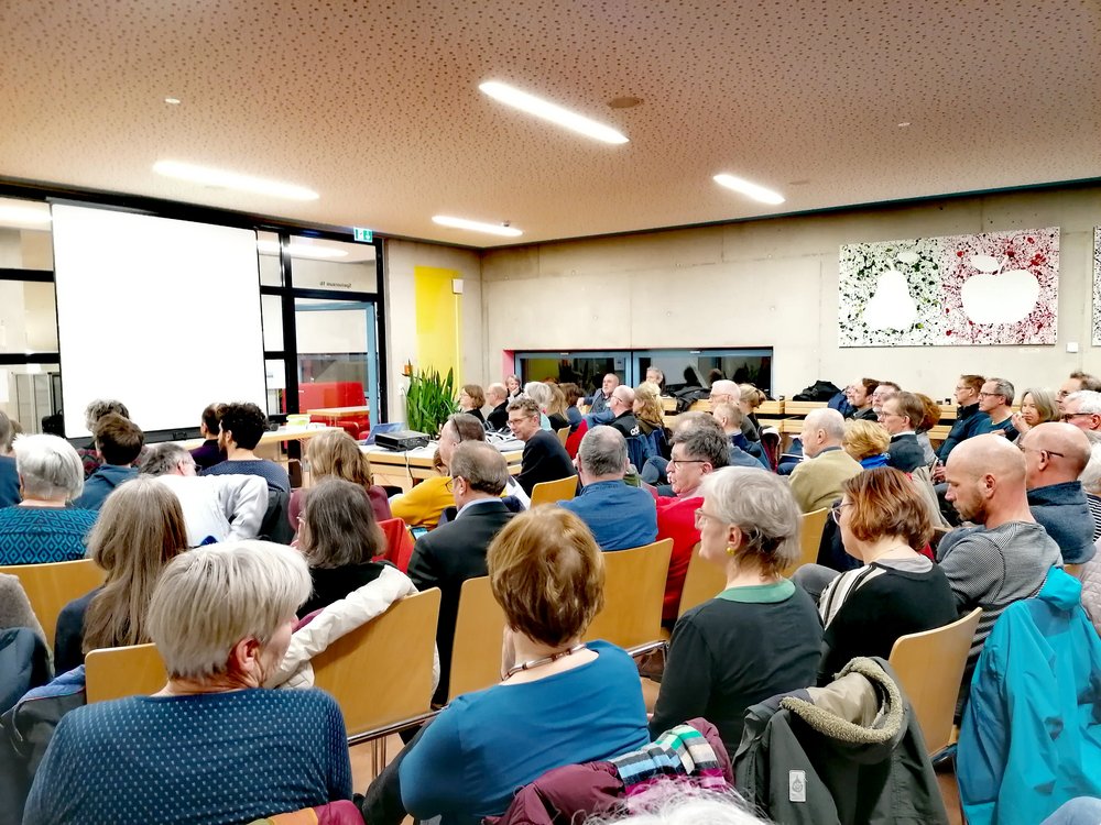 „Kinder erreichen die Schulen zumeist zu Fuß oder mit dem Fahrrad. Die bespiel- und besitzbare Stadt macht Lust auf zu Fuß gehen. Mit dem Stadtbus ist die Innenstadt zum Einkaufen und Bummeln leicht erreichbar. Mobilstationen in allen Stadtteilen mit Carsharing-Angeboten und Lastenräder bieten eine kostengünstige Alternativen zum eigenen Auto. Auf Radschnellwegen, mit Schnellbuslinien und den Bahnen ist das Pendeln ohne Auto leichter geworden. Brühl wird somit noch lebenswerter und der Einzelhandel blüht auf.“ Diese Vision für das Jahr 2025 diskutierten die Brühler Grünen am Montagabend mit ca. 120 Teilnehmer/innen im Max Ernst Gymnasium beim Grünen Mobilitätsforum. Der Vorstandssprecher der Brühler Grünen Robert Saß: „Diese Vision klingt zwar ambitioniert, sie ist aber notwendig und machbar. Dazu bedarf es der Einbeziehung der Bürger und der verschiedenen Interessengruppen. Diesen Dialog möchten wir führen. Ich freue mich, dass heute so viele Menschen unserem Angebot gefolgt sind.“