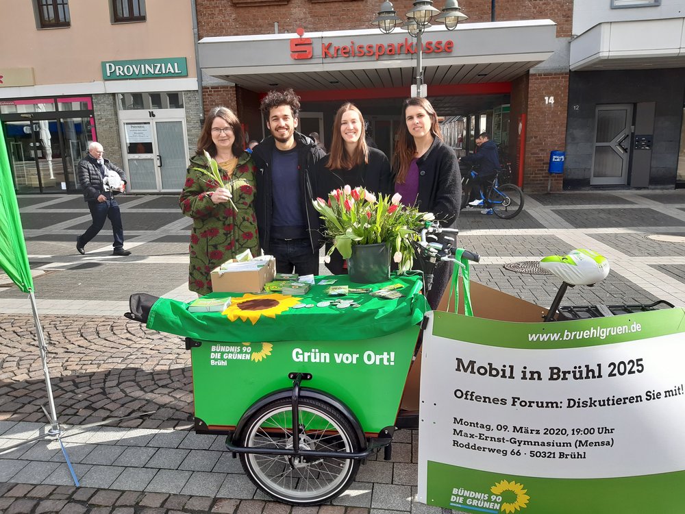 Bei einem kleinen Infostand anlässlich des Internationalen Weltfrauentags haben die Brühler Grünen Tulpen, Sonnenblumen und Wildblumensamen an die Bevölkerung verteilt. Dabei kamen viele anregende Gespräche über Frauenrechte und die Brühler Kommunalpolitik zustande. Vielen Dank an alle Helfer*innen und die netten Gespräche am Stand!