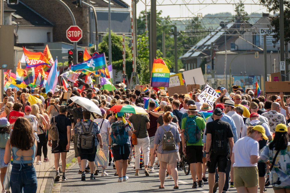 Unter dem Motto „Weltkulturerbe der Liebe!“ zogen 24.08.2024 über 1000 Teilnehmende beim ersten CSD durch die Brühler Innenstadt. Auf Einladung des Organisationsteams des PrideBrühl waren wir mit einem gut besuchten Infostand und als Ordner*innen und Teilnehmer*innen des CSD vertreten. Es hat uns große Freude bereitet, Brühl so bunt und vielfältig zu sehen. Wir sind stolz, alle gemeinsam ein Zeichen für Toleranz, Vielfalt und Schutz von queeren Menschen gesetzt zu haben. Ein großes Dankeschön gebührt dem Organisationteam und allen Helfer*innen, die dies möglich gemacht haben. Bleibt zu hoffen, dass es noch lange nachwirkt. Wir freuen uns schon jetzt, nächstes Jahr wieder dabei zu sein!