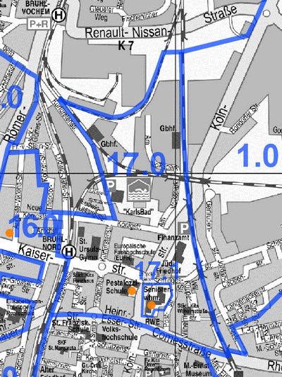 In Brühl: Stadtbücherei, in Brühl-Nord: Spielplatz am Volkspark.