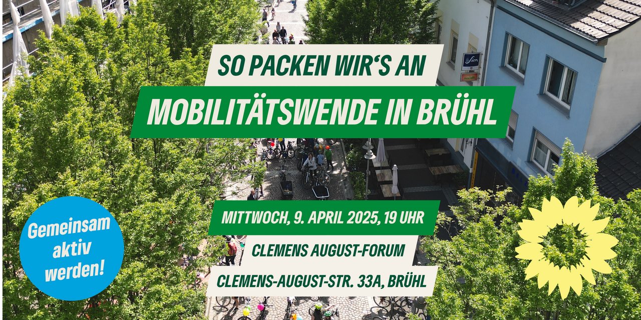 Obwohl die Mobilitätswende von vielen Menschen gewollt wird, ist sie kein Selbstläufer. Gerade im politischen Raum bestehen noch starke Beharrungstendenzen. Wir möchten mit Ihnen darüber diskutieren, wie wir gemeinsam dem Wunsch nach einer erfolgreichen Gestaltung einer zukunftsfähigen Mobilität in Brühl gerecht werden können.
